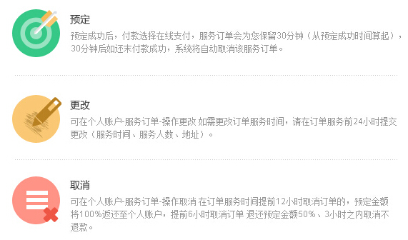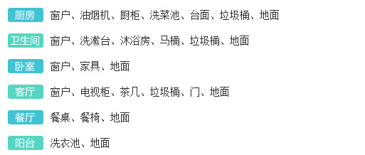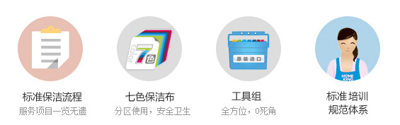 服务时长分为4小时,执行标准分为5区30项、5区35项、6区40项。服务前所有员工经过专业培训及考核,服务中使用七色分区保洁布、日式工具组。